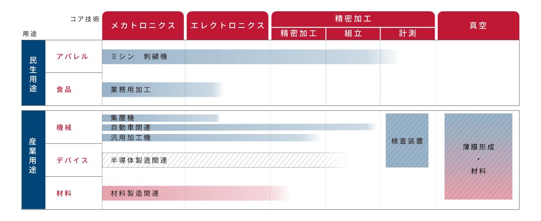 多年來,我們積極開展研發工作,建立了以機電一體化為核心的各種核心技術。 該技術應用于從消費類到工業的各個領域,并創造了許多獨特的產品。